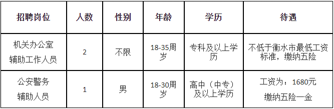6、公安警務(wù)輔助人員戶籍或居住在冀州區(qū)的優(yōu)先錄取;